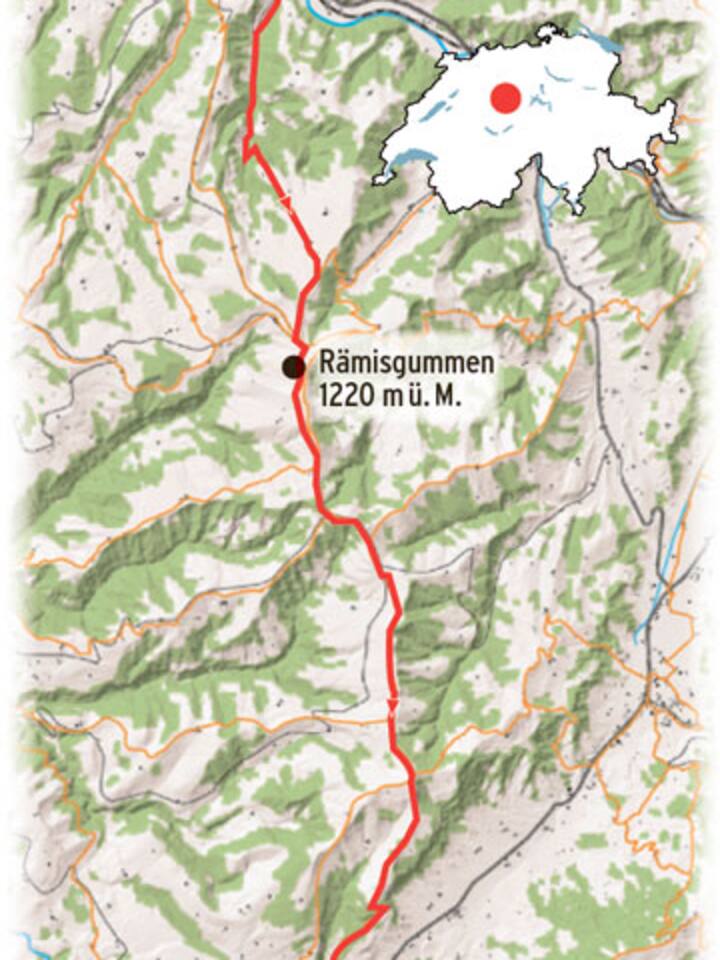 Etwas vergisst man immer, wenn man den Rucksack packt: das Sackmesser, die hartgekochten Eier oder die Wasserflasche. Für die gut vierstündige Wanderung über den Rämisgummen sollten Sie auf keinen Fall eine Packung Guetsli vergessen, denn wenn Sie in Trubschachen aus dem Zug steigen, wird Sie bestimmt eine unbändige Lust darauf übermannen – ja, in Trubschachen ist die grosse Emmentaler Guetslifabrik, in der die berühmten Kambly-Bretzeli hergestellt werden. Notfalls könnten Sie vor der Wanderung einen kleinen Umweg machen und dem Fabrikladen einen kurzen Besuch abstatten, um dort nach Lust und Laune zu degustieren. Aber Sie sind ja nicht zum Naschen ins Emmental gefahren, sondern wegen eines Naturschauspiels im Grenzgebiet zwischen dem Emmental und dem Entlebuch.