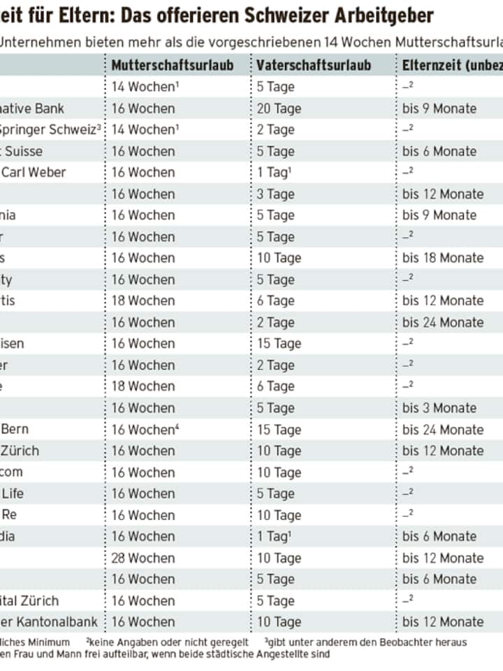 Wie blockiert die Debatte ist, zeigt auch der neuste Lösungsvorschlag. Er kommt von Männer.ch, dem Dachverband der Männer- und Väterorganisationen. Da eine öffentliche Finanzierung offenbar undenkbar und eine durch die Wirtschaft nicht mehrheitsfähig sei, schlägt Männer.ch vor, Elternzeit und Vaterschaftsurlaub privat über eine «Familienvorsorge» zu finanzieren: Analog dem Sparen für die Altersvorsorge sollen Frau und Mann über die Pensionskasse oder über eine private Vorsorgeeinrichtung steuerbefreit Geld beiseitelegen können. Kommt dann ein Kind, steht dieses Geld als (Eltern-)Zeitguthaben zur Verfügung.