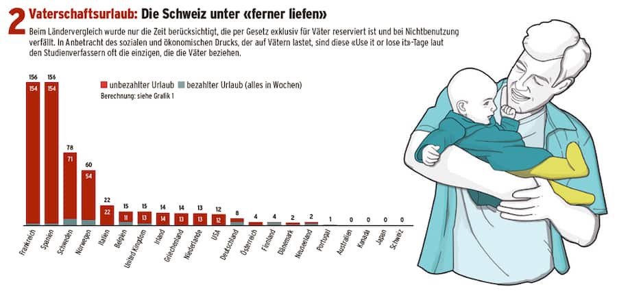 EKFF-Präsident Jürg Krummenacher erstaunt die Kritik nicht. Doch er meint: «Dass uns gewisse Kreise als zu progressiv wahrnehmen, ehrt uns eher.» Er wehrt sich aber entschieden gegen den Vorwurf, eine Luxuslösung zu propagieren: «Im internationalen Vergleich ist unser Vorschlag sehr bescheiden.» Tatsächlich: Fast alle Industrieländer kennen teils seit Jahrzehnten weit grosszügigere Elternzeitregelungen als die Schweiz (siehe nachfolgende Grafiken).