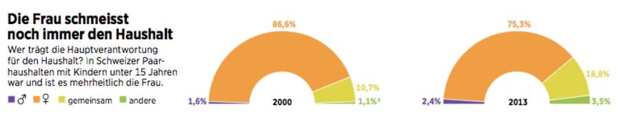 Junge kinderlose Frauen und Männer bezeichneten zudem vollzeitlich arbeitende Eltern mit Krippenkindern als «daneben», «ganz extrem» oder «krass», zeigt eine Studie der Zürcher Wirtschaftsgeografin Karin Schwiter von 2011. Die Befragten distanzierten sich zwar vom klassischen Ernährer-Hausfrau-Modell und befanden, heute sei alles verhandelbar. Verhandelbar aber hiess: Der Mann arbeitet 100 Prozent und kann allenfalls auf 90 oder 80 Prozent reduzieren, die Frau erzieht primär die Kinder und kann zu 10, 20 oder vielleicht 40 Prozent einer Erwerbstätigkeit nachgehen.