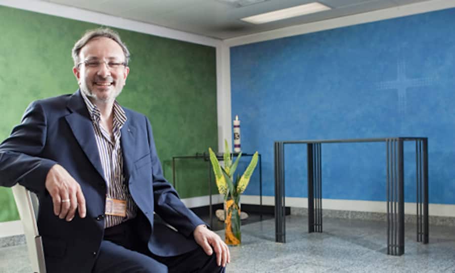 Bei Katastrophen wie Flugzeugabstürzen oder Terroranschlägen wie 1997 in Luxor koordinieren wir das 100-köpfige Careteam. Oft betreuen wir auch Angehörige von Menschen, die auf einem Flug unerwartet gestorben sind. Am häufigsten kommen aber Mitarbeitende von am Flughafen ansässigen Firmen mit ihren Alltagssorgen zu uns. Sie suchen einfach jemanden zum Reden, der vorurteilslos zuhört und verschwiegen ist. Kürzlich klingelte das Pfarramts-Handy um ein Uhr nachts, weil einer wissen wollte, was ich vom Islam halte. Ein anderes Mal kam eine geschiedene Mutter, die es zwischen Kindererziehung, Job und ihrem kleinen Budget fast zerreisst. Wir sind ein Auffangbecken. Flughafen-Insider wissen: Wenn du keine Ahnung hast, wohin du jemanden mit seinem Problem schicken könntest, dann gibt es noch das Flughafenpfarramt. Als Lückenbüsser komme ich mir aber nicht vor. Das ist schliesslich unsere Aufgabe: Wir sind von der Kirche ausdrücklich gesandt, um uns Zeit für die Menschen zu nehmen. So tragen wir zur Vermenschlichung des Flughafens bei.