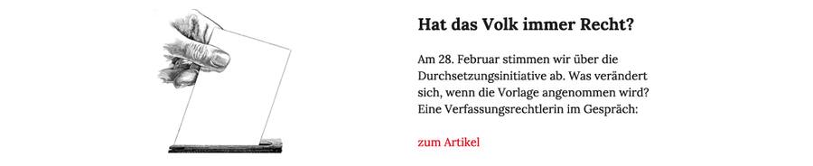 Für den alt Bundesrichter stellt sich also auch die Frage, wie viel Unheil eine Gesellschaft anrichten will, um für vermeintlich mehr innere Sicherheit zu sorgen. Fraglich ist für ihn und andere Kritiker der Initiative zudem, was es für den Rechtsstaat Schweiz bedeutet, wenn die Mehrheit der Stimmbevölkerung einen detaillierten Strafenkatalog inklusive Strafmass direkt in die Verfassung schreibt und dabei Parlament und Gerichte umgeht.