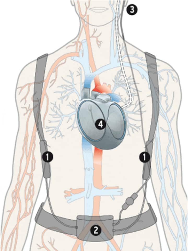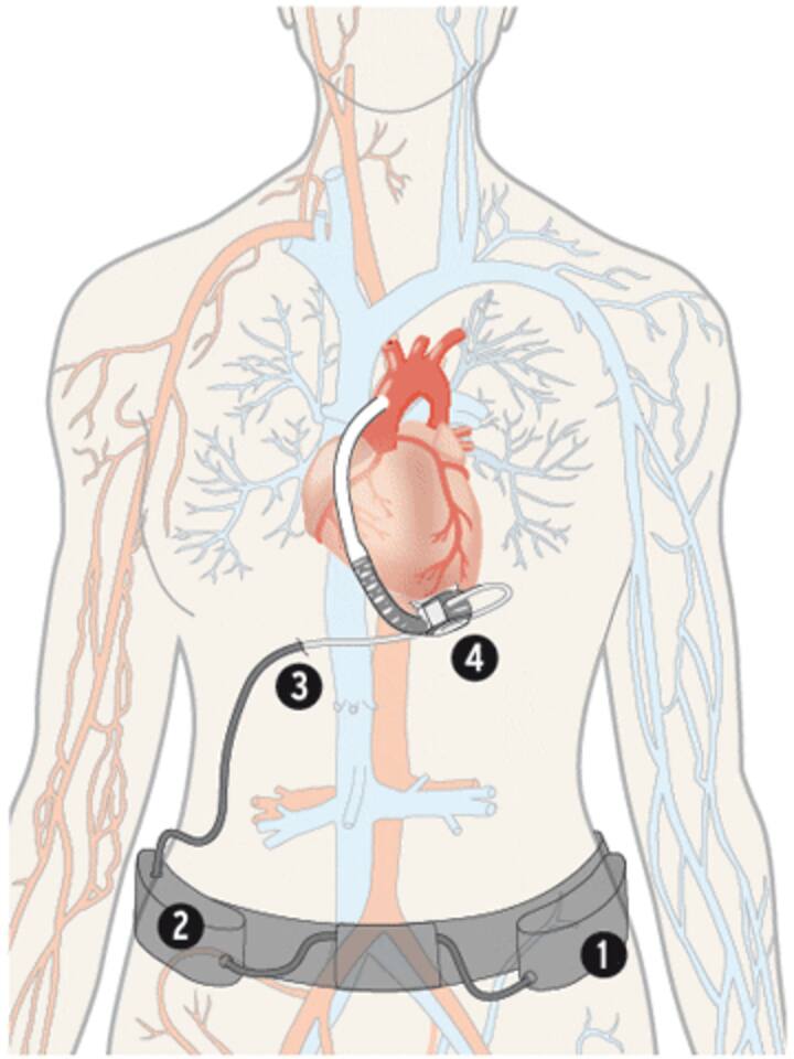 Die Pumpsysteme werden auf die linke Herzkammer aufgesetzt und über aufladbare Batterien mit Energie versorgt – deren Laufzeiten betragen vier bis zwölf Stunden. Die Pumpe ist über ein Kabel durch die Bauchdecke mit einem Controller verbunden.