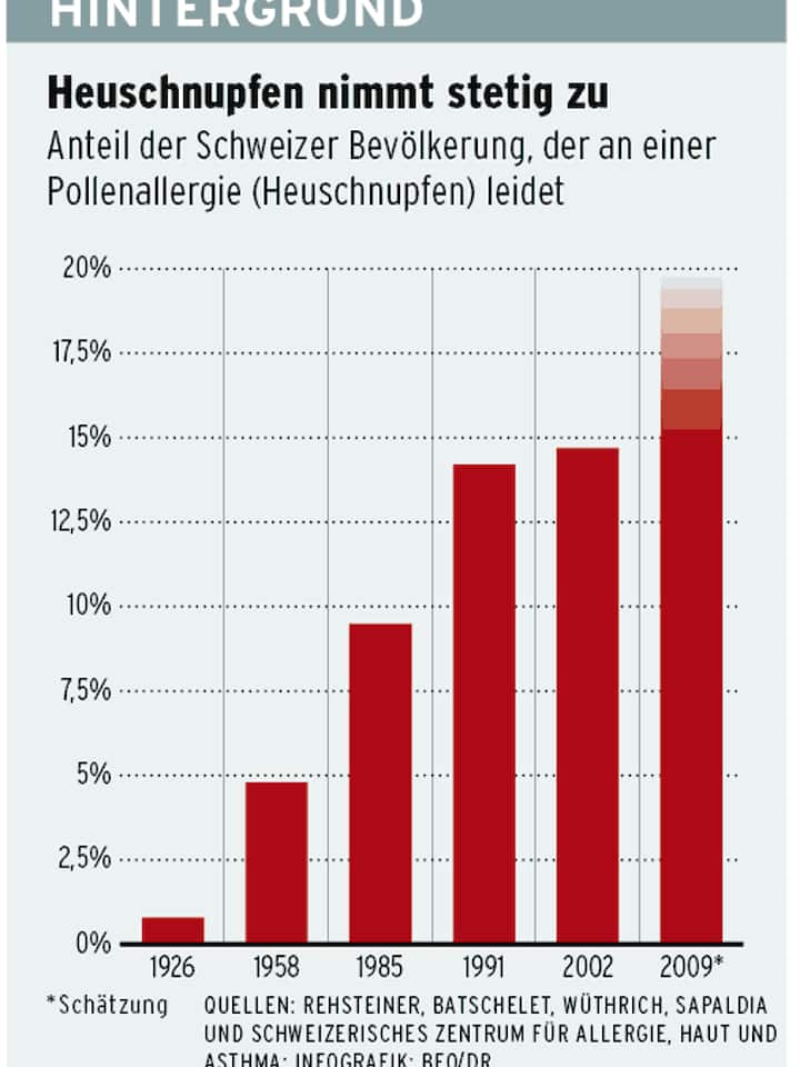 Unsere Urgrosseltern hatten es gut: Sie konnten noch im Heu oder unter einer Birke liegen, ohne gleich niesen oder nach Luft ringen zu müssen. Zwar gab es auch vor 100 Jahren schon Heuschnupfen und Asthma, aber längst nicht im selben Ausmass wie heute: Weniger als zwei Prozent der Bevölkerung litten bei uns vor 80 Jahren an einer Pollenallergie. Heute sind es zwischen 15 und 20 Prozent.