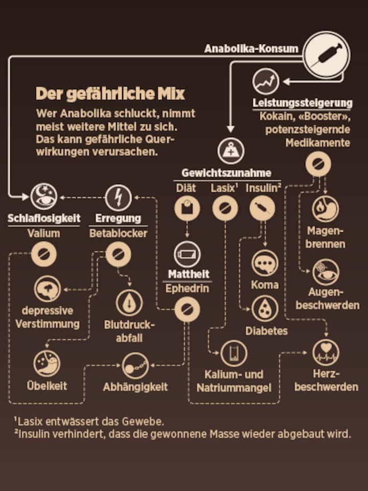 Quellen: Antidoping Schweiz, EZV, «Anabole Steroide – Das schwarze Buch 2010»/D. Sinner, Labor für Muskelplastizität/Uniklinik Balgrist/Marco Toigo