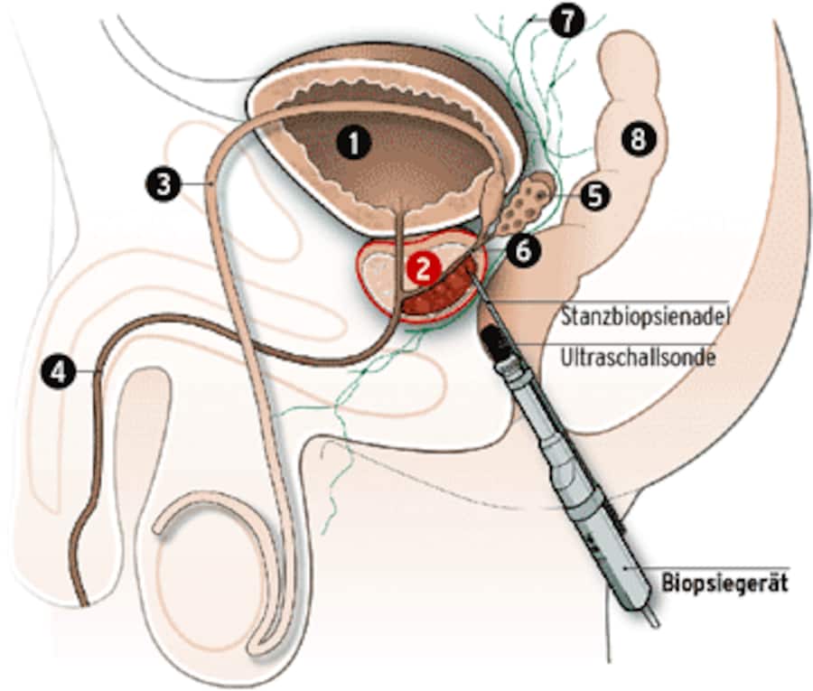 Einen sicheren Nachweis, ob der Patient Prostatakrebs hat, liefert die Biopsie. Der Urologe führt dazu über den Mastdarm eine Nadel in die Prostata ein und entnimmt Gewebeproben. Manchmal ist es notwendig, die Biopsie ein- oder zweimal zu wiederholen, um endgültig Klarheit zu gewinnen. Der sogenannte «Gleason-Score» zeigt dabei an, wie aggressiv der Tumor ist.
