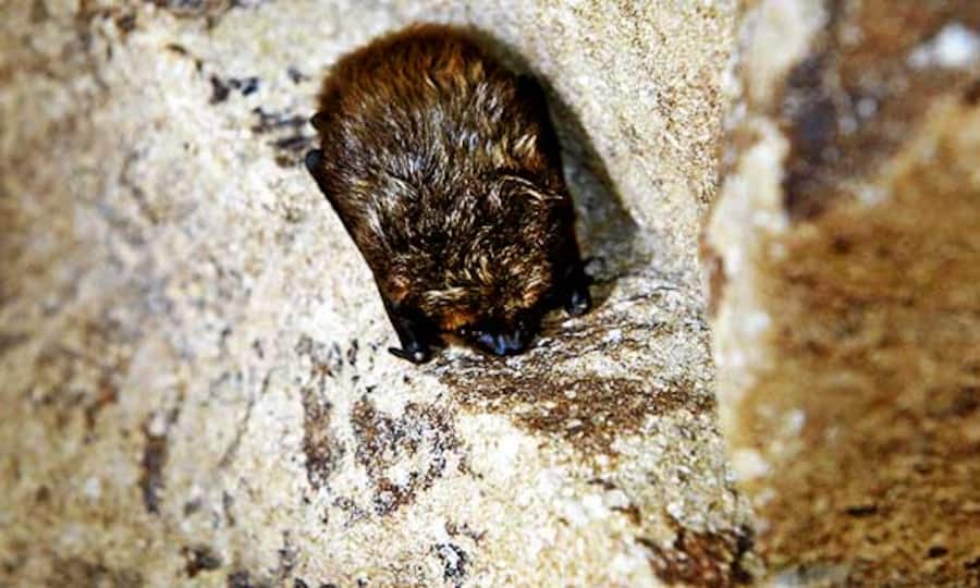 Ein solches Säugetier taucht plötzlich im Licht der Lampen auf. Es hat sich zum Überwintern an einen Vorsprung gehakt. Die Forscher werfen einen raschen Blick hinauf und gehen weiter. Niemand will den einsamen Schläfer aufwecken. Erst später macht die Gruppe Halt.