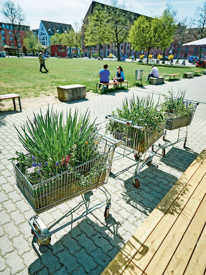Eines der Projekte heisst «Keinkaufswagen»: Wo Grünflächen fehlen, können Kräuter oder Gemüse in mobilen Gartenbeeten spriessen. Wir treffen die umfunktionierten Einkaufswagen an der Burgunderstrasse 16 an. Und tatsächlich sieht die Erde darin aus, als hätte ein Anwohner sie gerade geharkt. «Frisch gejätet, vorbereitet für den Frühling», sagt Tilla und streicht mit einem zufriedenen Lächeln darüber. Die Wagen sind ihre Abschlussarbeit im Kunststudium. «Inzwischen gibt es in Basel 180 Stück und 30 in anderen Schweizer Städten», sagt sie.