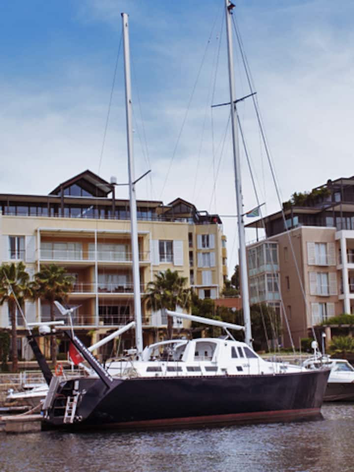 Als ich bei der periodischen Kontrolle das Ruder und die hydraulischen Pumpen genauer ansah, erstarrte ich und staunte nicht schlecht: Die Unterkonstruktion des Ruderbockes hatte Spiel und bewegte sich bei jeder Ruderbewegung einen Zentimeter. Als ich das länger beobachtete war mir schnell klar, dass das nicht während drei Monaten halten würde, und ich entschloss mich daher, wieder zurück Richtung Kapstadt zu segeln. Nach dem Eindunkeln lag Nina-Soraya wieder im Hafen fest. Ich musste bei viel Seitenwind anlegen und war froh, dass mein Bugstrahlruder wieder arbeitete. Am nächsten Morgen traf ich die nötigen Abklärungen.