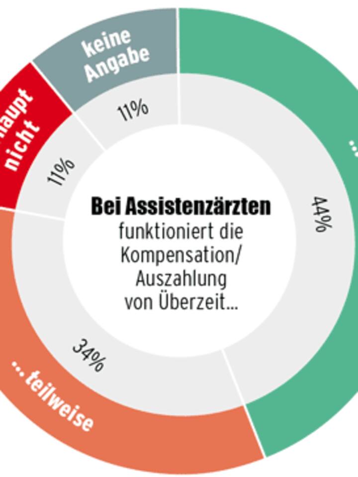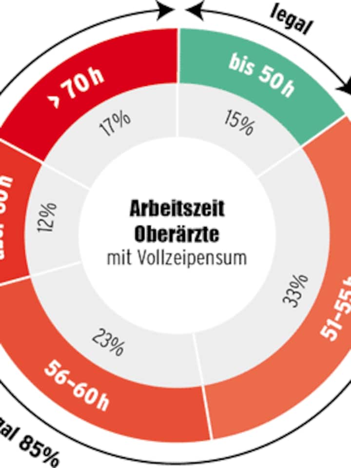Die bedenklichsten Ergebnisse: 85 Prozent der Oberärzte und fast 80 Prozent der Assistenzärzte arbeiten mehr, als gesetzlich erlaubt wäre. Dieses Problem ist nicht neu: Schon vor über zehn Jahren wehrten sich die Ärzte gegen die überlangen Arbeitszeiten. Aufgrund dieser Bemühungen wurden 2005 alle Assistenz- sowie 2012 fast alle Oberärzte dem Arbeitsgesetz unterstellt. Dieses schreibt eine Höchstarbeitszeit von 50 Stunden pro Woche, maximal sieben aufeinanderfolgende Arbeitstage und höchstens 140 Überstunden im Jahr vor.