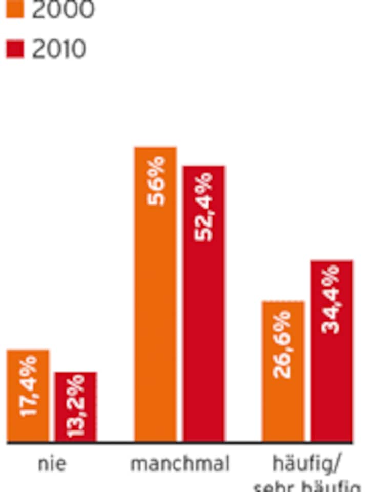 Die grosse Stressstudie des Staatssekretariats für Wirtschaft (Seco) aus dem Jahr 2010 brachte es an den Tag: 34 Prozent der Erwerbstätigen in der Schweiz sind häufig bis sehr häufig gestresst. Zehn Jahre zuvor hatten sich noch deutlich weniger Befragte gestresst gefühlt, nämlich nur 27 Prozent. Überdurchschnittlichen Stress empfinden die Westschweizer (50 Prozent) und jüngere Erwerbstätige bis 34 Jahre. Und ein beträchtlicher Anteil dieser häufig bis sehr häufig Gestressten ist gemäss der Befragung eher schlecht oder überhaupt nicht imstande, den Stress aus eigener Kraft zu bewältigen.