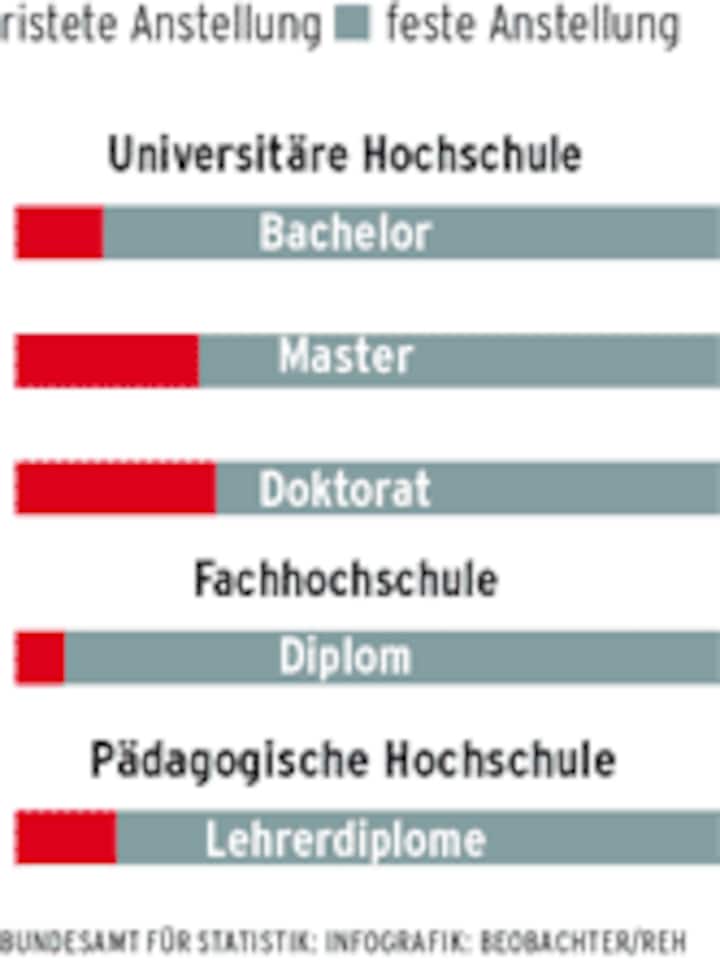 Befragungen haben ergeben, dass 13 Prozent der Uni-Absolventen ein Jahr nach dem Abschluss als Praktikanten arbeiten. Die Vermutung, dass die wenigsten von ihnen nicht ganz freiwillig in einem Praktikum stecken, liegt nahe. Ein Viertel der Hochschulabgänger verdiente dabei 1000, die Hälfte 2500 Franken im Monat.
