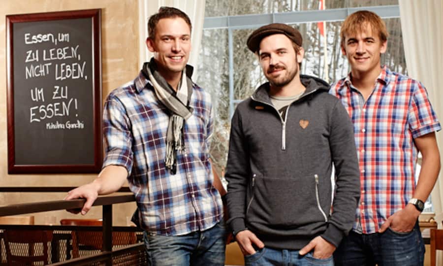 Alles begann in einer Garage: Philippe Giesser (links), Christoph Emmenegger, Betriebsleiter, Simon Feigenwinter vom Hotel Wetterhorn