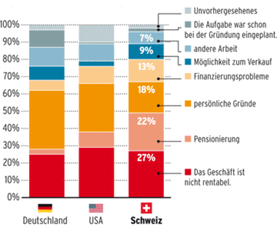 In vier von zehn Fällen schlossen Schweizer ihre Firma wegen der finanziell desolaten Lage (Stand 2012)