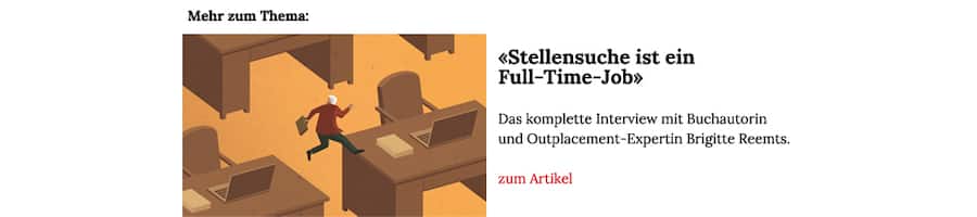 Nach einer Entlassung müsse man schnell aktiv werden. «Gerade bei älteren Arbeitnehmern ist Tempo wichtig. Ihre Chancen auf dem Arbeitsmarkt sind umso besser, je schneller sie handeln.» Über 50-Jährige brauchten länger, bis sie eine neue Festanstellung gefunden haben.