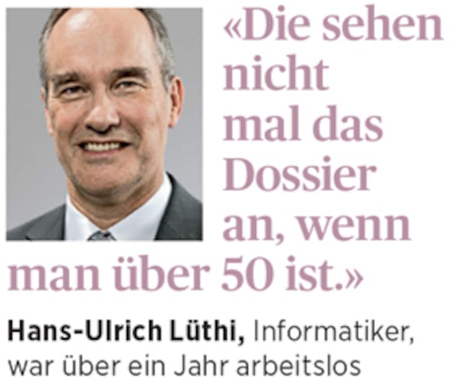 Lüthi warnt mich davor, mir Illusionen zu machen. «Grössere Firmen scannen die Unterlagen nach festen Rastern durch. 50 plus ist ein Ausschlusskriterium. Die schauen das Dossier nicht einmal an, wenn sie einen mit Jahrgang 1966 oder älter sehen.» Man müsse hartnäckig bleiben und alle Kontakte ausnützen. Auch wenn einem das schwerfalle.