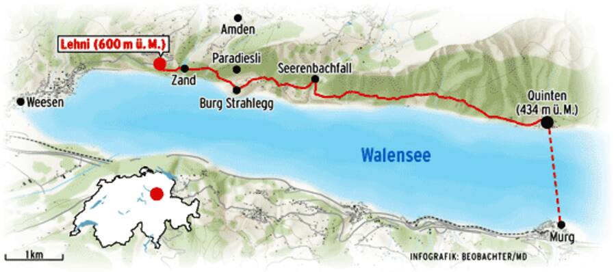 Eine Wanderung vor eindrücklicher Kulisse: Ausblick über den Walensee auf die Gemeinde Filzbach