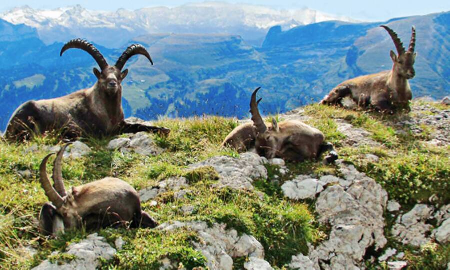 Gewandt balanciert Jost Schneider über den schmalen, schneebedeckten Grat. Eisstücke lösen sich unter seinen Schritten und kullern in den mehrere hundert Meter tiefen Abgrund – kein Grund zur Beunruhigung für den geübten Berggänger. Auch der schwere Rucksack mit der Kameraausrüstung scheint den Naturfilmer nicht zu behindern. Minuten später steht Schneider in feldgrüner Tarnkleidung auf einer windverwehten Bergkuppe mitten im Alpstein. Er will Ausschau halten nach Huftieren. Es ist Anfang Oktober, die Aussicht über das Schweizer Mittelland und halb Süddeutschland ist überwältigend. «Dort unten», sagt Schneider und zeigt in ein Tal, das vom Toggenburg in den Alpstein hineinführt, «dort unten konnte ich zum ersten Mal die Geburt eines Steinbock-Kitzes filmen.»
