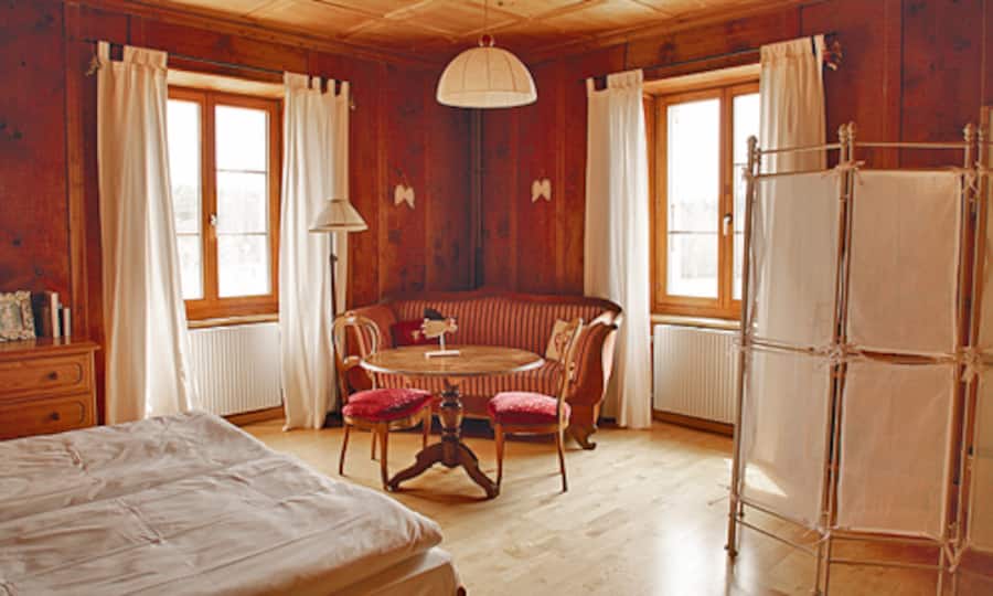 Die Wände wurden frisch gestrichen, das Interieur entrümpelt und von allem Synthetischen befreit. Liebevolle Details wie zum Beispiel die schwarze Menütafel in Herzform im gemütlichen Speisesaal erfreuen. «Wir haben uns sofort in dieses Haus verliebt – in die Lage, die Ruhe, die Natur.» Im Jahr 2007 wurde das Hotel ins Verzeichnis der schönsten historischen Hotels des Schweizer Heimatschutzes aufgenommen, «eine grosse Ehre für uns». Auch das Essen hier ist einfach und gut: saisongerechte Marktküche mit Produkten aus der Region sowie Salat und Gemüse aus dem Hotelgarten.