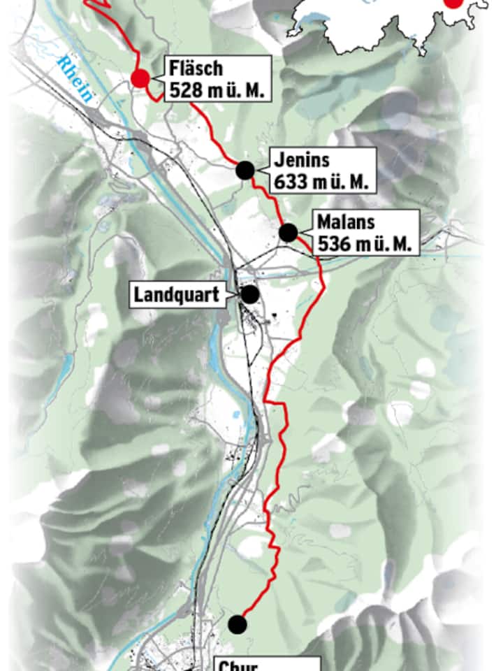 Einen vielseitigen Einblick in den Rebbau erhält man auf dem Bündner Weinwanderweg von Chur über Landquart, Malans und Jenins nach Fläsch. Ab Landquart braucht man rund dreieinhalb Stunden, ab Jenins noch zwei – Degustationspausen bei den Winzern nicht eingerechnet.