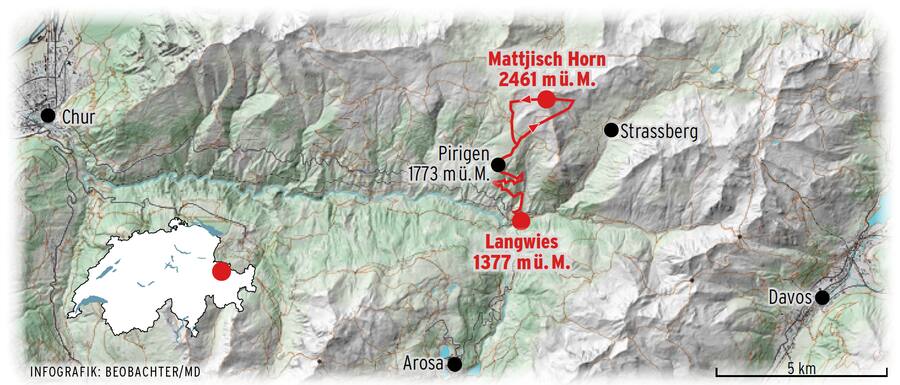 Wegbeschreibung: Vom Bahnhof Langwies ist der Weg nach Pirigen und weiter aufs Mattjisch Horn gut ausgeschildert.