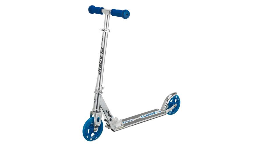 Die Vielfalt bei den klassischen Tretrollern ist gross. Auch diese Scooter kann man zusammenklappen, der Lenker ist verstellbar. Generell gilt: Je grösser die Räder, desto schwerer, aber auch schneller sind sie. Kleinere Räder bedeuten grössere Wendigkeit, aber auch eine höhere Unfallgefahr; ein kleiner Stein kann zur Stolperfalle werden.