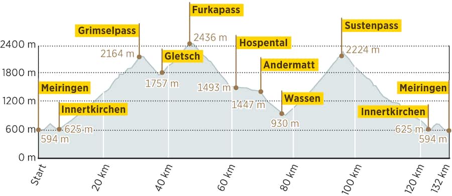 In den vergangenen Wochen wurde also das Velo zu meinem ständigen Begleiter, auf dem Arbeitsweg, am Wochenende. Bis ich mich bereit fühlte. So liegen nun 3875 Höhenmeter vor mir, quasi eine der Königstouren der Schweizer Alpenpässe, der Klassiker für viele Radfahrer – ein Feuerwerk der Serpentinen und majestätischen Ausblicke.