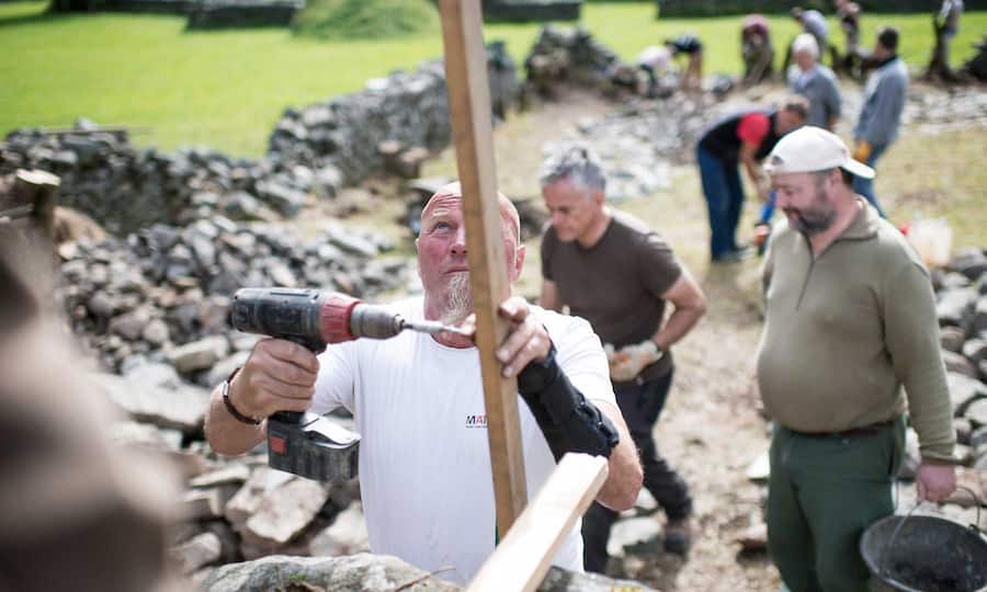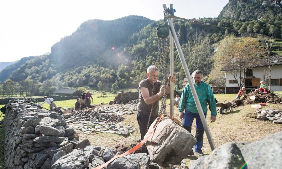 Stoll merkte rasch, dass er allein nicht weit kommen würde, und rekrutierte Helfer. Indem er die gewonnenen Kenntnisse ständig weitergab, wurde der studierte Architekt schliesslich Trockenmaurer und Kursleiter. Über die Jahre hat er mit Kursteilnehmern sämtliche eingestürzten Mauern der Stiftung wieder aufgebaut.