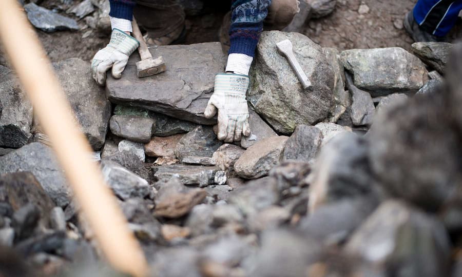 Aus rohen Steinen einen Wall zu bauen, trägt eine Magie in sich. Freiwillige reisen von weit her an, um beim Trockenmauern Gelassenheit und Zuversicht zu lernen.