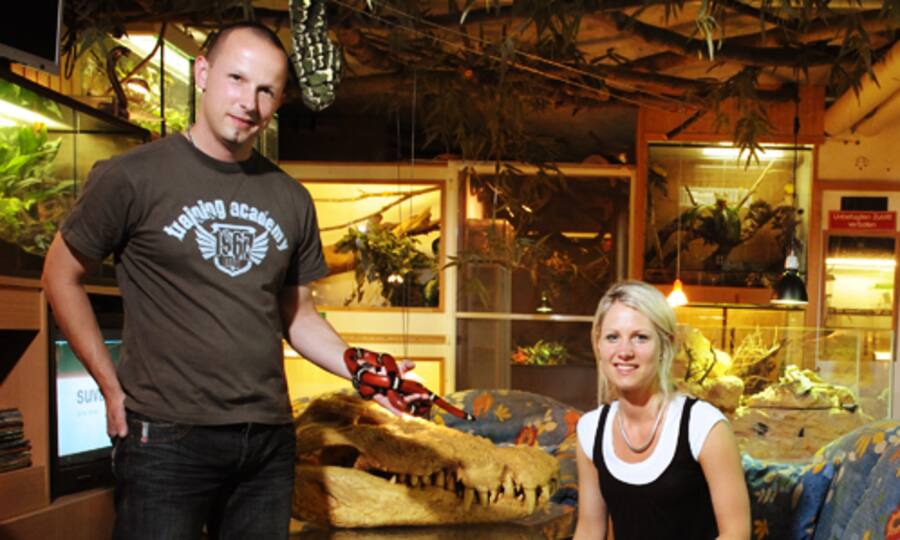 Exotische Tiere sind seine Leidenschaft: Erich Hausammann, 35, Winterthur, und Lucia Lottenbach