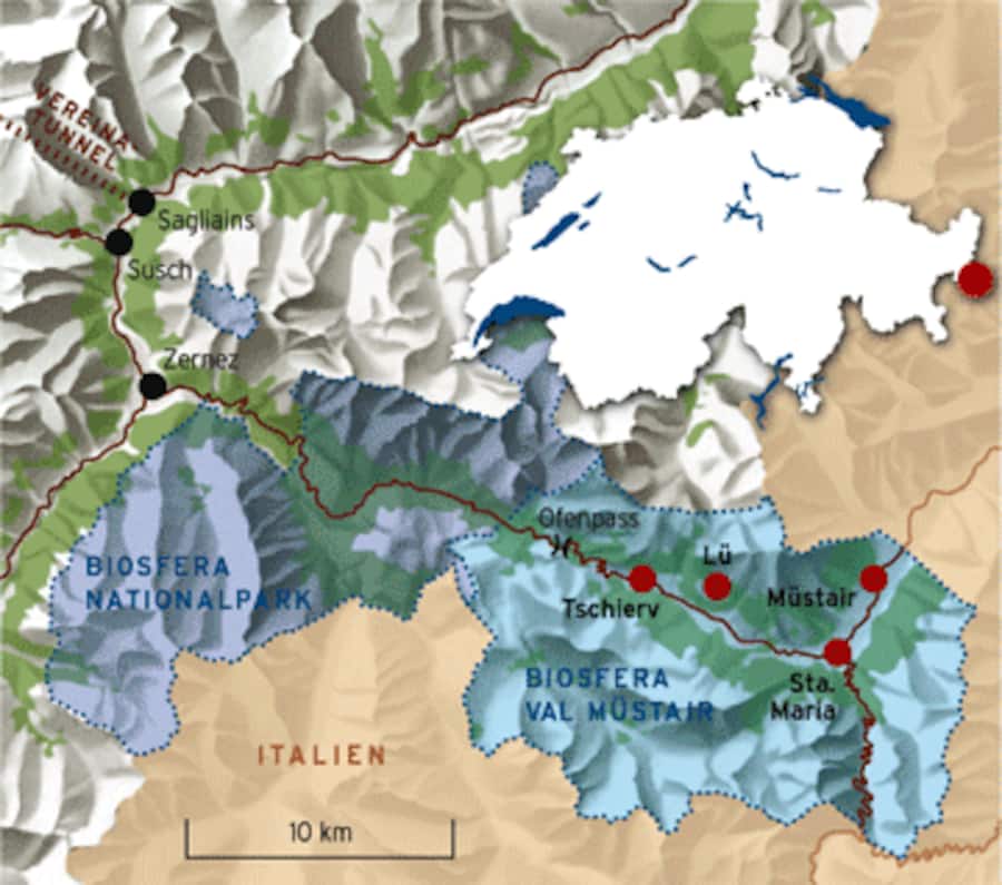 - Tschierv: Das Dorf am Ofenpass heisst auf Deutsch Hirsch.