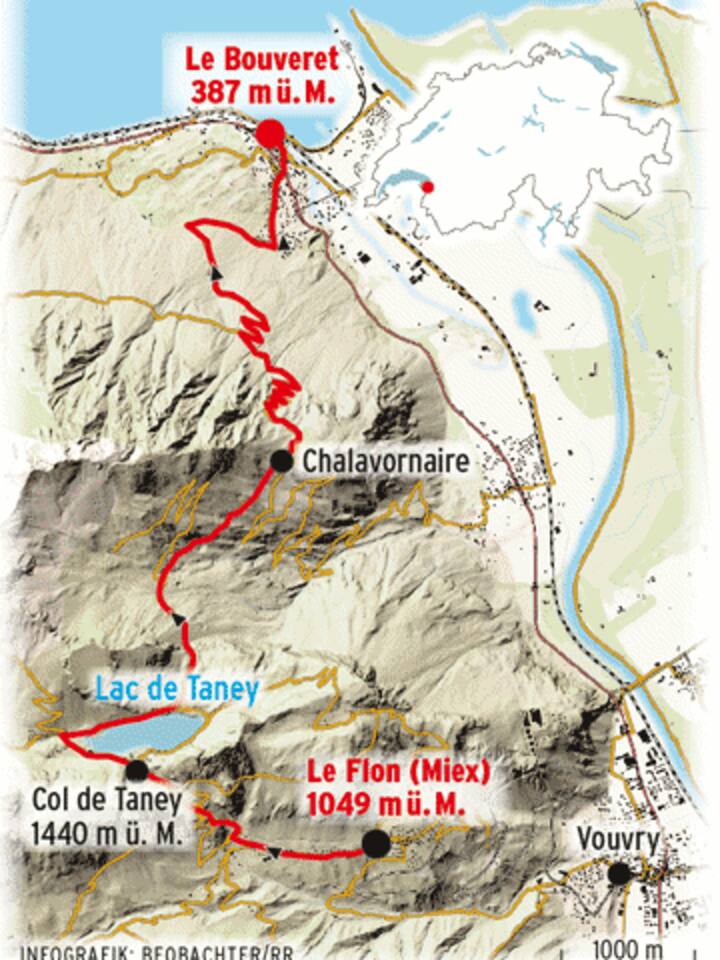 Umwerfend, dieser Kontrast: Die Nase riecht das würzige Harz des alpinen Nadelwalds, durch den man gerade abwärts wandert, das Auge sieht die sanften Rebberge des Lavaux vor sich, und das Hirn schenkt sich kühlen Weisswein ein. Wir sind hoch über dem Rhonetal, auf der Südseite des Genfersees, noch knapp auf Schweizer Gebiet. Rund 1000 Höhenmeter geht es aus den wilden Alpen hinab an die milden Gestade des Lac Léman, doch der Abstieg zieht sich über knapp drei Wegstunden dahin und lässt deshalb nie die Knie schlottern.