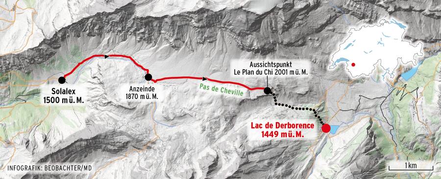 Wers gern mystisch mag, holt Charles Ferdinand Ramuz aus dem Rucksack. Der wohl bekannteste Autor der Romandie hat 1935 in «Bergsturz auf Derborence» die Leidensgeschichte der Talbewohner eindringlich nacherzählt, Francis Reusser hat sie 50 Jahre später spektakulär verfilmt. Und wer seinerzeit in Geologie einen Fensterplatz hatte, geniesst einfach, dass er hier eine Nachhilfestunde erhält – gratis und franko zu einer fantastischen Aussicht auf eine wilde Bergwelt.