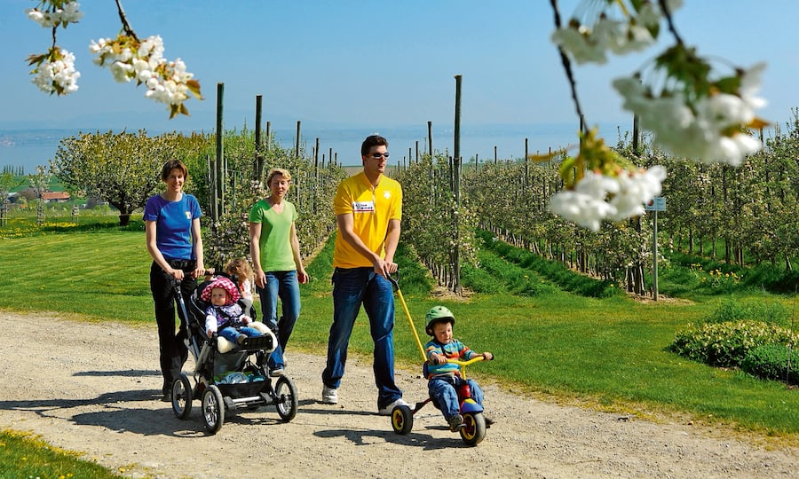 Vielen Thurgauern ist der Blust die liebste Zeit im Jahr. Wenn die Obstbäume aus der Ferne aussehen wie von einer dünnen Schneeschicht bedeckt, geht von den Plantagen ein besonderer Zauber aus. Thurgau Tourismus hat für diese Wochen eigens ein «Bluescht-Telefon» eingerichtet, das die Anrufer über den tagesaktuellen Stand der Obstbaumblüte informiert. Wenn sich die weiss-rosa-farbenen Blüten ins Grün der Landschaft mischen, ist es Zeit, die Wanderschuhe zu schnüren und Mostindien zu Fuss zu erkunden.