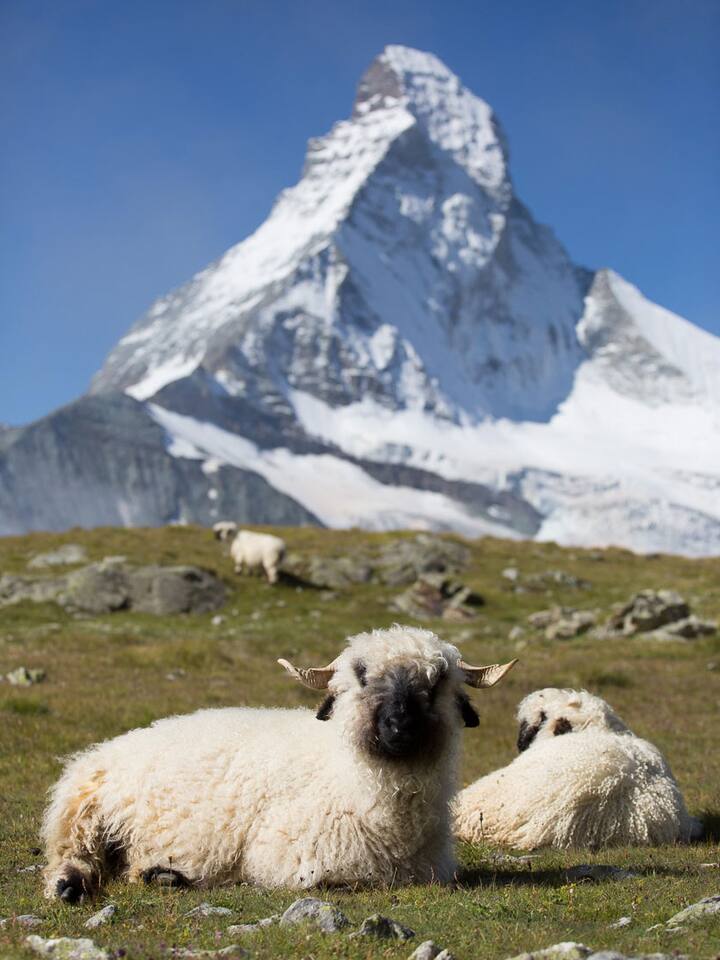 Noch im Dunkeln steigen die zwei Wanderer zum Höhbalmstafel auf. Den Anblick des ersten Sonnenlichts auf dem Matterhorn wollen sie nicht verpassen. Ein magischer Augenblick, wenn die Spitze rot erglüht, das Licht den Berg langsam hinunterwandert, ihn zum Glitzern bringt. Schwarznasenschafe lümmeln im Gelände herum. Keck lugen ihre schwarzen Gesichter aus der weissen Wollpracht hervor, als wollten sie sagen: «Hier habt ihr euer Postkartenmotiv!»