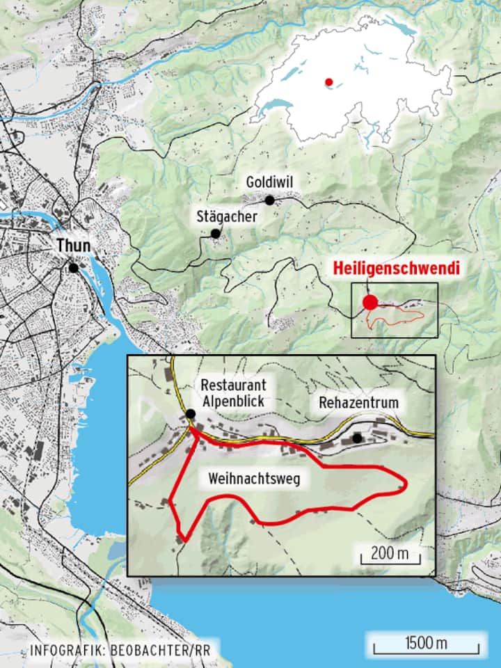 Geschenke kaufen. Guetsli backen. Gäste bewirten. Der Dezember ist für viele ein einziger Stress. Dabei sollte Weihnachten doch Anlass zur Besinnung sein. Der Weihnachtsweg im Berner Oberländer Dorf Heiligenschwendi lädt genau dazu ein. In sechs Szenen erzählen lebensgrosse Figuren die klassische Weihnachtsgeschichte: Maria und der Engel, Maria und Josef beim Wirt, die Hirten auf dem Feld, die Engel, die Heiligen Drei Könige und die Krippe.