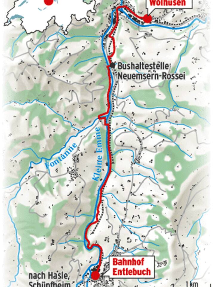 An-/Rückreise: Per Bahn von Bern, Luzern oder Langenthal nach Wolhusen. Der Uferweg ist ab da signalisiert. Wer den verkehrsreichen ersten Abschnitt auslassen will: Postauto Richtung Romoos bis Neuemsern-Rossei. Bei der Brücke flussaufwärts dem Wanderweg folgen. Bis Bahnhof Entlebuch dauert die Wanderung rund zwei Stunden – wer noch weiter will, geht bis Hasle (plus 40 Minuten) oder bis Schüpfheim (nochmals 50 Minuten) weiter, wo die Züge (Strecke Luzern–Langnau–Bern) ebenfalls halten.