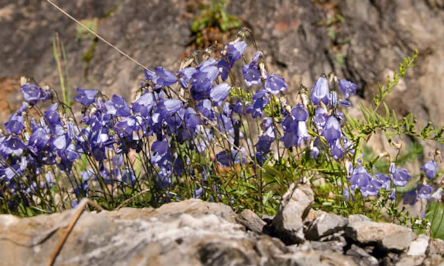 Alpine Schönheiten: Der Weg ins Hochtal Fondei ist gesäumt von Glockenblumen.