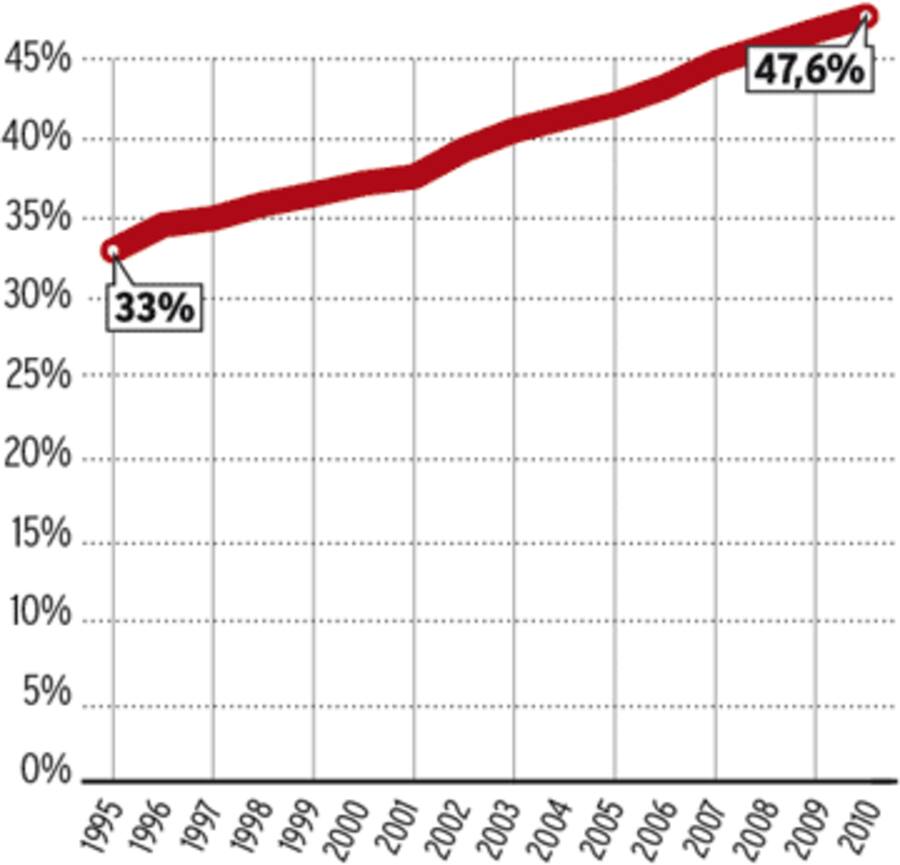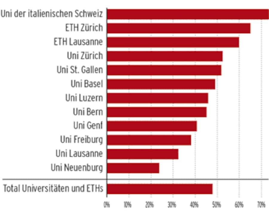 Anteil der ausländischen Professoren, die 2010 an den universitären Hochschulen der Schweiz unterrichteten