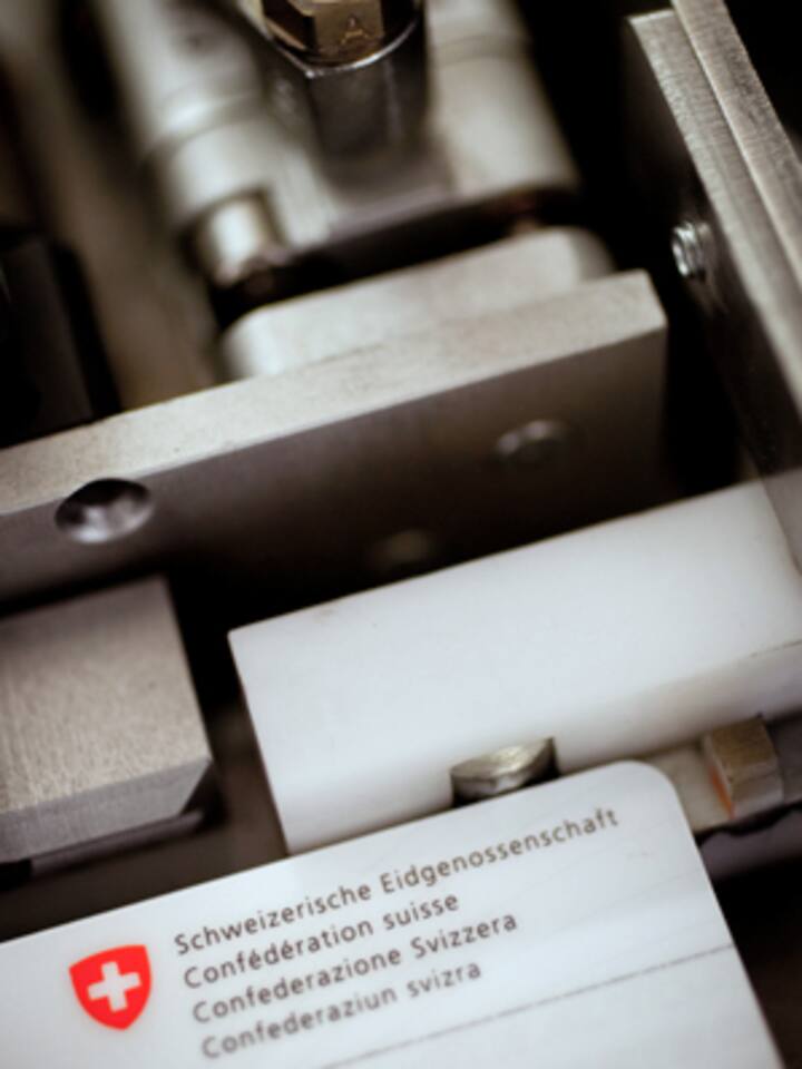 «Wir laden die Daten nicht selber auf den Chip, das geschieht durch die Behörden», sagt Urs Fawer. Die Trüb AG liefert den jeweiligen Ländern die fertigen Datenseiten für die Pässe mit allen visuellen Sicherheitsmerkmalen – und auch mit dem Chip, der unsichtbar in die Polycarbonat-Seite eingebaut ist. Der Chip ist verschlüsselt. «Die zuständigen Behörden erhalten von uns einen elektronischen Schlüssel, um die noch leeren Chips zu öffnen und mit Daten zu füttern», so Fawer. «Mit einem weiteren Schlüssel schliessen sie ihn dann für immer.» Was einmal auf dem Chip ist, bleibt drauf. Es ist nicht möglich, Daten nachträglich zu verändern oder durch andere zu ersetzen.