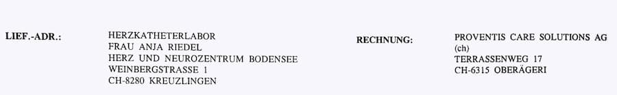 Gemäss geltender Tarifvereinbarungen hätte das Herz-Neuro-Zentrum Bodensee dafür den Krankenkassen einen Zuschlag von zehn Prozent sowie die Mehrwertsteuer verrechnen dürfen, also 717 Franken. Auf den Rechnungen an die Krankenkassen, ausgestellt von Proventis, figurierten jedoch andere Beträge. Bei einer Patientin wurden solche Stents zu 2554 Franken pro Stück verrechnet, wie eine dem Beobachter vorliegende Rechnung zeigt. Das entspricht einer Marge von stolzen 422 Prozent zugunsten der Proventis Care Solutions AG in Oberägeri – und damit direkt zugunsten der Geschäftsleitungsmitglieder der zwei Kliniken: Dierk Maass, Martin Costa und Antoinette Airoldi. Auf die Geschäfte der Proventis angesprochen, meldet sich ein von der Klinik engagierter Krisenkommunikator. Über «Liefer- und Bezugsverhältnisse sowie auch Geschäftsabläufe» mag er keine Auskunft geben. Es sei jedoch «Fakt, dass das Herz-Neuro-Zentrum auch von Proventis Medizinalprodukte immer unter Listenpreis, auf Marktniveau oder darunter bezieht», erklärt er.