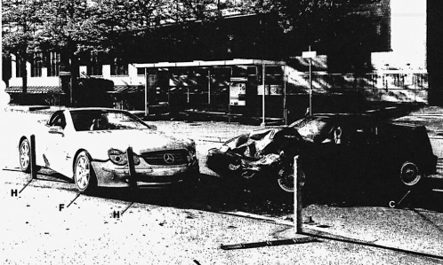 Ein Polizeifoto nach dem frontalen Zusammenprall
