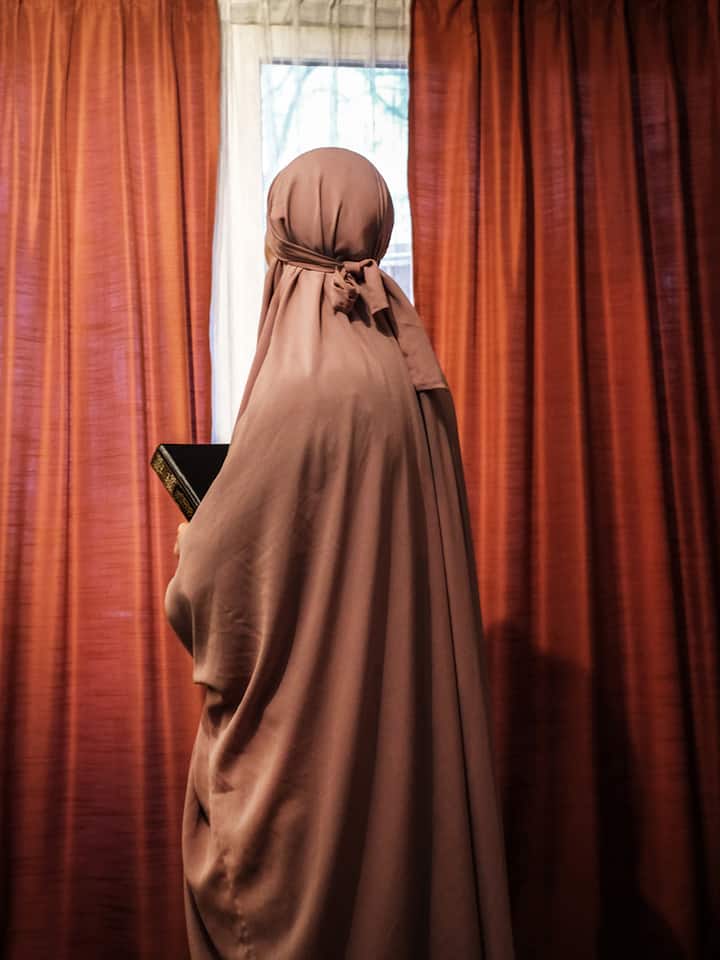 Später dann, als wir endlich arbeiten durften, fand ich eine Stelle in einer Wäscherei. Ich konnte mich abends manchmal kaum mehr auf den Beinen halten, so anstrengend war die Arbeit, aber ich war glücklich, weil ich endlich kein Geld mehr von der Gemeinde brauchte. Dazugehörig fühlten wir uns trotzdem nicht. In dieser Zeit hat mein Mann angefangen zu beten. Ich sehe das heute so: Allah hat sich an ihn gewandt und ihn unterstützt. Er weiss, wann es ihn braucht. Ich schaffte es nicht, regelmässig zu beten, tagsüber in der Wäscherei war es schwierig, abends war ich schlicht zu erschöpft.