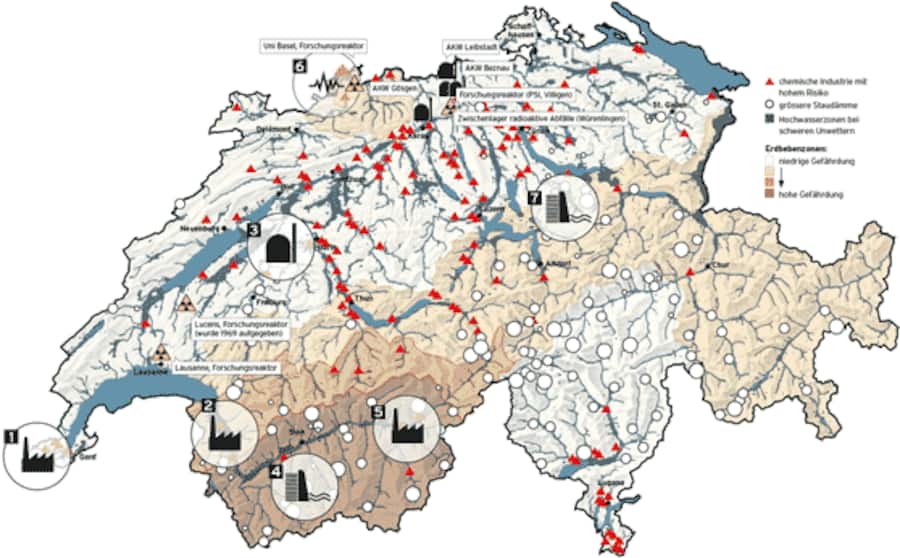 Insgesamt 258 chemische Betriebe und Tanklager weisen in der Schweiz ein höheres Unfallpotential auf. Das bedeutet, dass bei einem Unfall mit über zehn Toten und/oder einer schweren Schädigung der Umwelt zu rechnen wäre. Ein solcher Ernstfall trat 1986 mit dem Grossbrand von Schweizerhalle ein. Die Betriebe sind heute verpflichtet, die Risiken zu ermitteln und alle geeigneten Massnahmen zur Vermeidung von Unfällen zu treffen