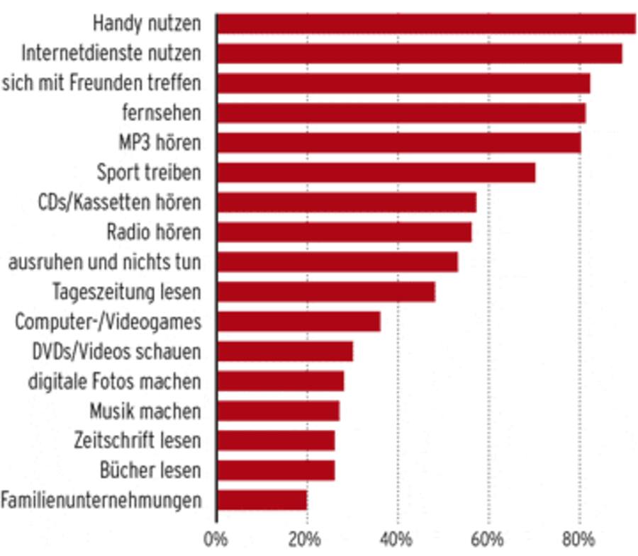 Anteil der Jugendlichen, die täglich/mehrmals pro Woche folgende Dinge tun