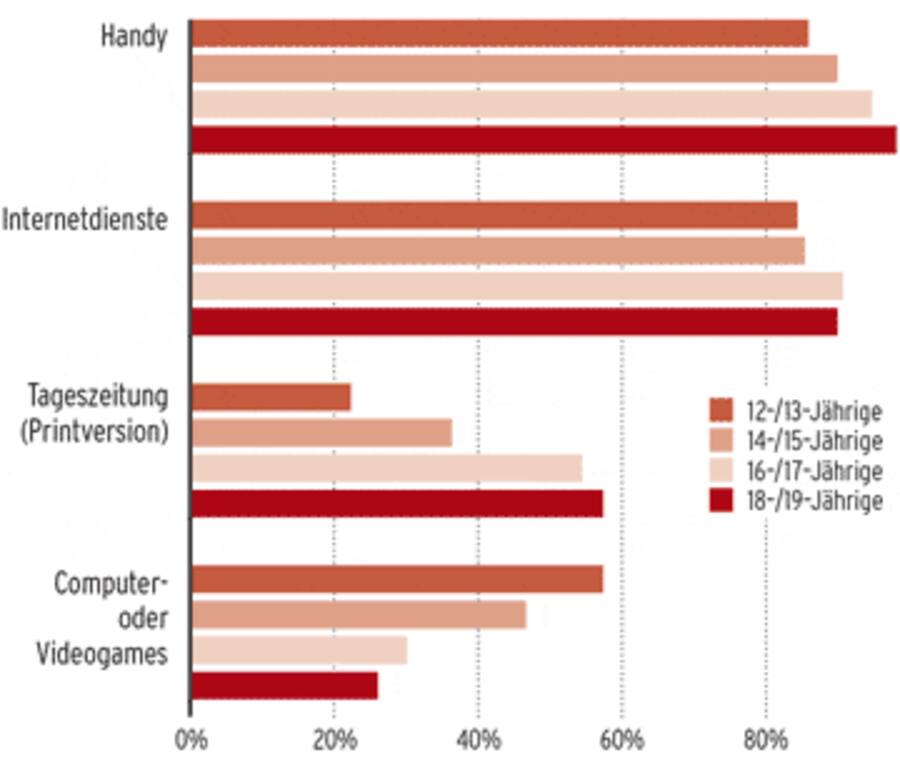 Jugendliche, die die folgenden Medien täglich/mehrmals pro Woche nutzen
