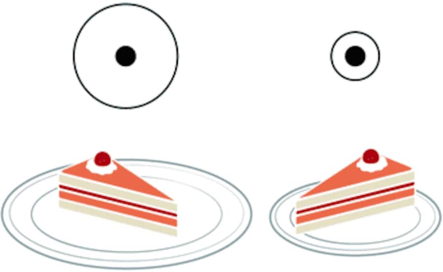 Im kleinen Kreis erscheint der Punkt grösser. Dasselbe gilt für das Tortenstück auf dem kleinen Teller.