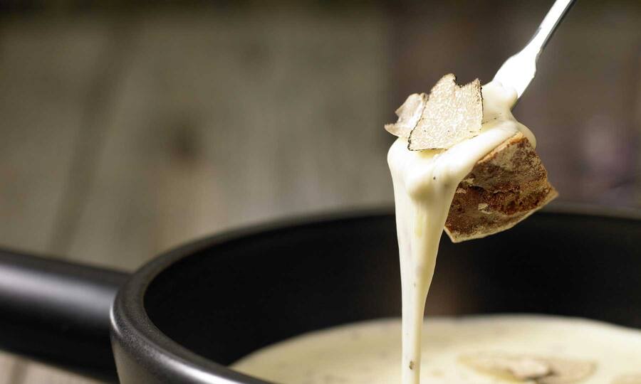 Wenn die Schweizer Trüffler und ihre Hunde genug finden – so wie letztes Jahr, heuer hat der heisse Sommer den Trüffeln übel zugesetzt –, dann schmecken die Edelpilze nicht nur auf Pasta, sondern auch sehr viel eidgenössischer zum Käsefondue: Idealerweise ist die Fonduemischung nicht allzu rezent, zum Beispiel Moitié-Moitié. Jeder Gast erhält eine eigene Trüffelknolle, von der er nach Belieben auf den Tellerrand raspelt. Brot in den Käse tunken, ein paar Sekunden warten, damit der Käse nicht mehr gar so heiss ist, und dann in die Trüffelspäne dippen.