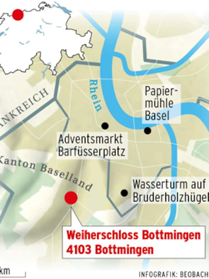 Doch es lockt nicht nur der Lämpchen Schein, es wartet auch das Reich von Ruth und René Gischig. Sie wirten gemeinsam mit Tochter Tina auf dem Herrschaftssitz aus dem 14. Jahrhundert, der im 17. Jahrhundert im Barockstil umgebaut wurde und seit 1957 dem Kanton Baselland gehört. Die Herrschaftsräume wie Rittersaal, Steinsaal und Spiegelzimmer sind für geschlossene Gesellschaften und Bankette bestimmt. Für den heutigen Besuch ist das kleine Restaurant vorgesehen; ein Speisezimmer à la Louis XVI.: Tische mit drei Lagen Tuch, poliertem Silberbesteck in mehreren Reihen, gepolsterten Sesseln, Kronleuchtern. Kellner Torres geleitet die Gäste zum Tisch im Erker mit Sicht auf den Weiher.