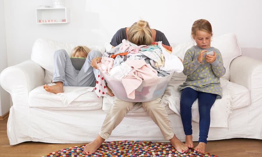 Beim Einkaufen trifft die Mutter einen Bekannten. Ihr Fünfjähriger fällt ihr ständig ins Wort, sie kann keinen Satz zu Ende sprechen. Der Bekannte ist irritiert, die Mutter verabschiedet sich mit einem Schulterzucken.